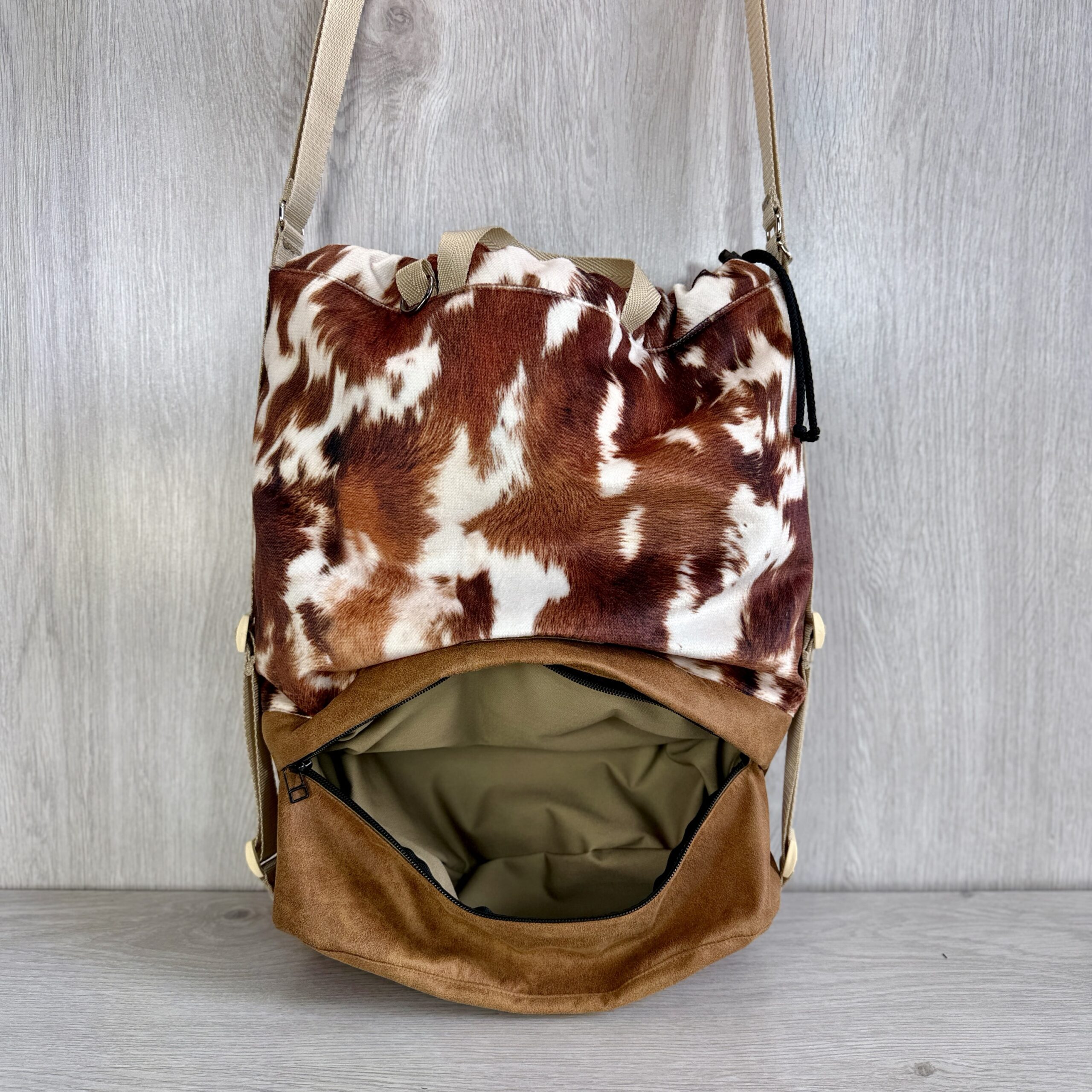 GIGA to torebka i plecak w jednym, dzięki 2 długim regulowanym paskom, można łatwo ją łatwo przekształcić z plecaka w torebkę i na odwrót.