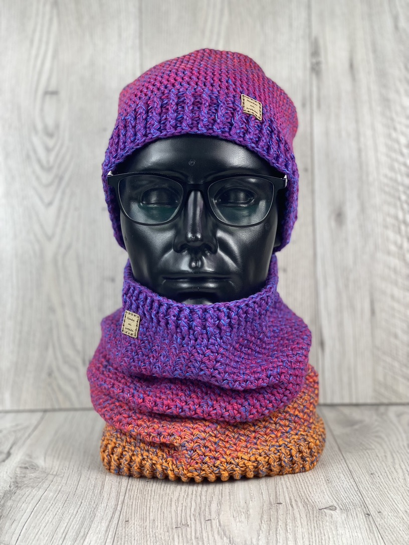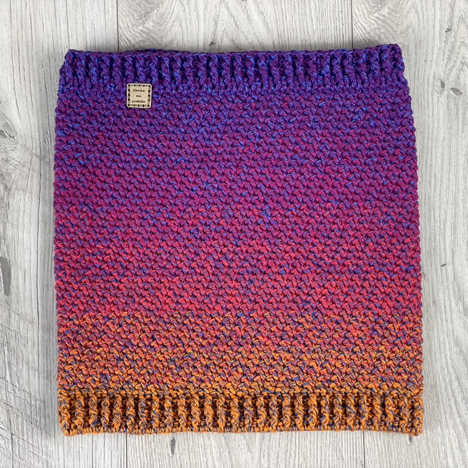Komin w kolorze „ombre” – przechodzące od fioletowego do pomarańczowego z jedno nitka niebieskiego